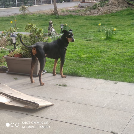 2011 kam unser zweite Pinscherhündin Miss Fine vom Sternentor dazu. geboren am 16.09.2011. Eine kleine, schlaue wachsame Hündin, die keiner Auseinandersetzung  aus dem Weg ging. Fine wurde 12 Jahre alt.