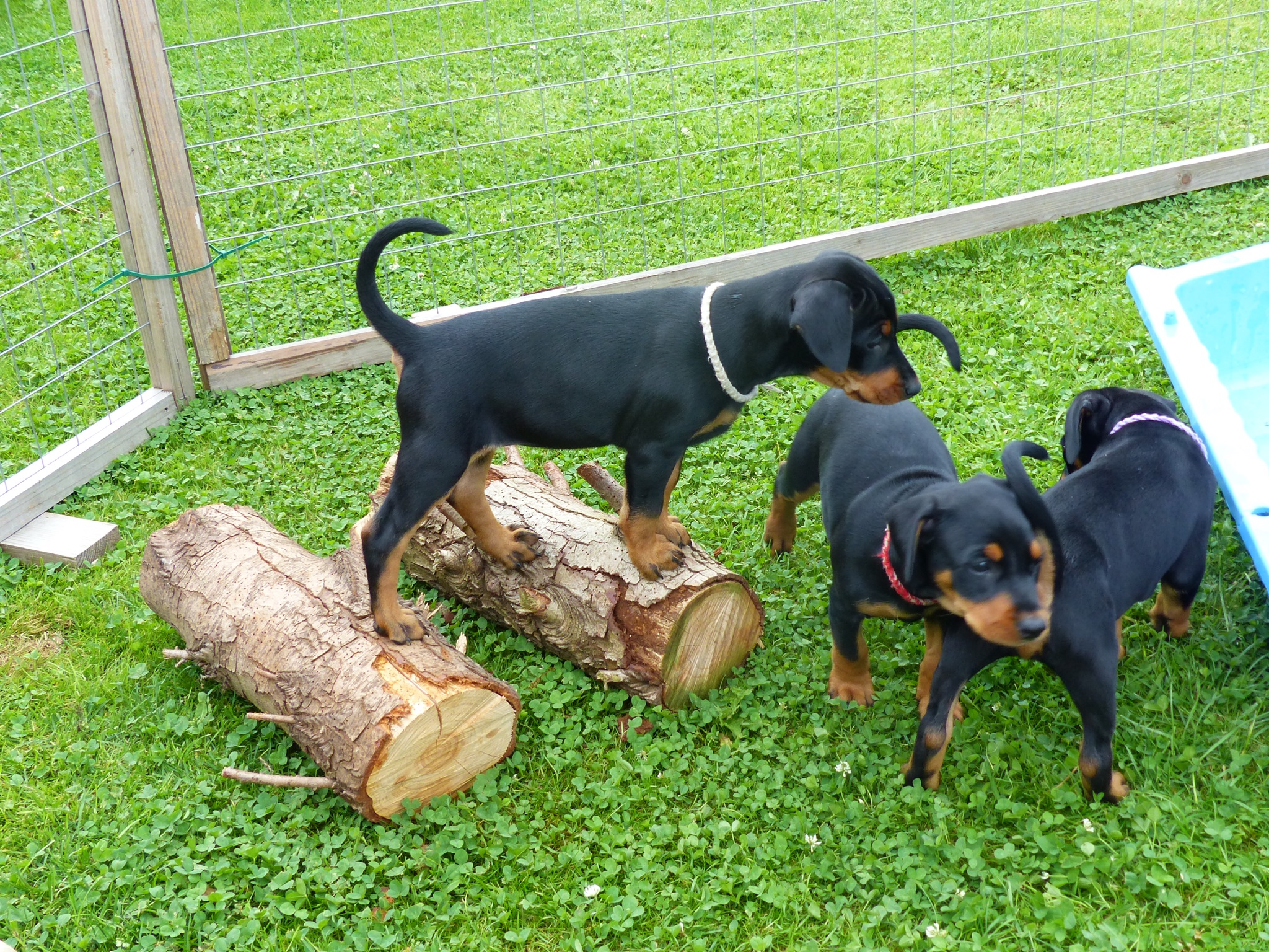 Die Erziehung zur Stubenreinheit erfordert Geduld und Konsequenz. Nach der Fütterung und zwischendurch lernen die Welpen, ihre Geschäfte draußen zu verrichten. Dafür gibt es einen Bereich auf der Terrasse und dem Rasen. Die Welpen verlassen nachts , um ihr Geschäft zu verrichten, ganz von alleine Ihren Schlafplatz im Körbchen. Im Auslauf im Haus legen wir eine große Fläche mit Papier aus. Diese Fläche reduzieren wir im Lauf der Wochen. Zu Abgabe wird die kleine Toilettenfläche kaum noch benutzt und die Welpen sind bald stubenrein.