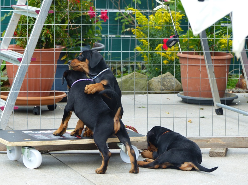 Um die Welpen an verschiedene Umweltgeräusche zu gewöhnen, ist es ratsam, sie frühzeitig sanft an Staubsauger und andere laute Geräte zu gewöhnen. Dies trägt zur Entwicklung einer stressresistenten Persönlichkeit bei. Auch der Kontakt zu Kindern ist bei uns Programm.